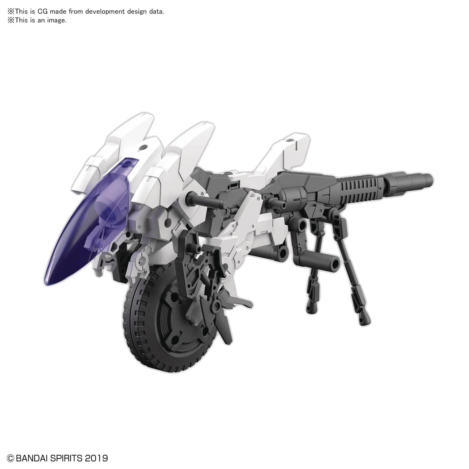 The Extended Armament Vehicle, also known as EXA, model kit series duals as an accessory and a stand alone series of various armed vehicles, all of which can be combined with 30MM models! The Canon Bike can be rearranged to create the third force’s Roy Roy!