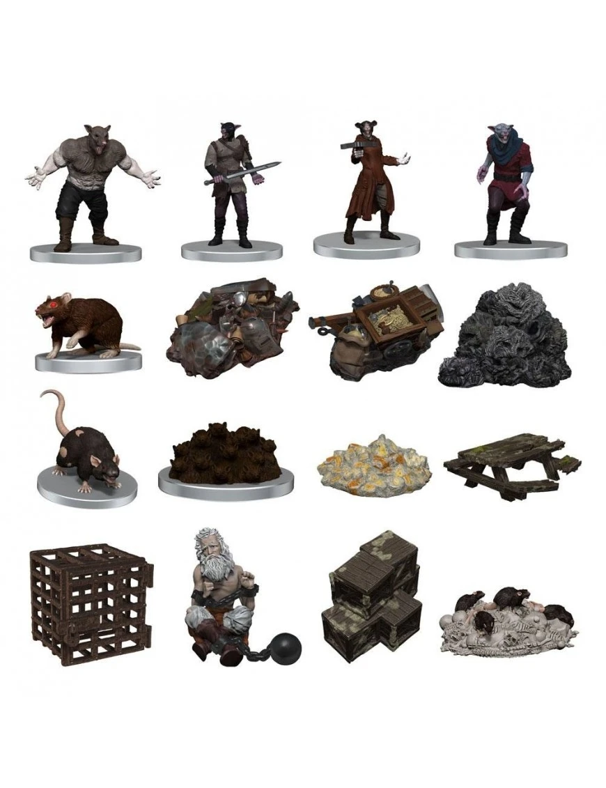 Upgrade your Dungeons & Dragons gameplay with the Adventure in a Box- Wererat Den! Inside you will find 6 pre-painted miniatures, 9 different den dressings, and a two-sided, slide together, tiled battle map to build out your very own wererat themed adventure. Whether your next clash with wererats it is a brief encounter or a drawn out scenario, the Adventure in a Box – wererat Den is your place to start