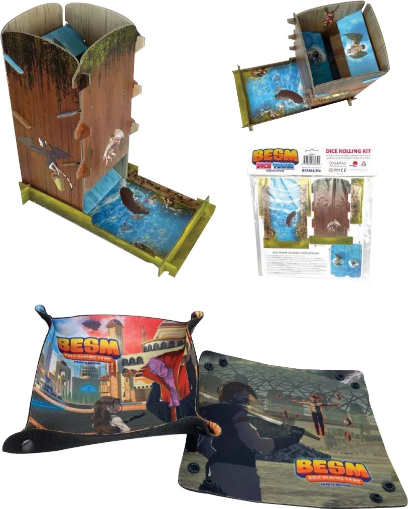 A full-color dice tower and rolling tray set for your games of BESM 4th Edition.