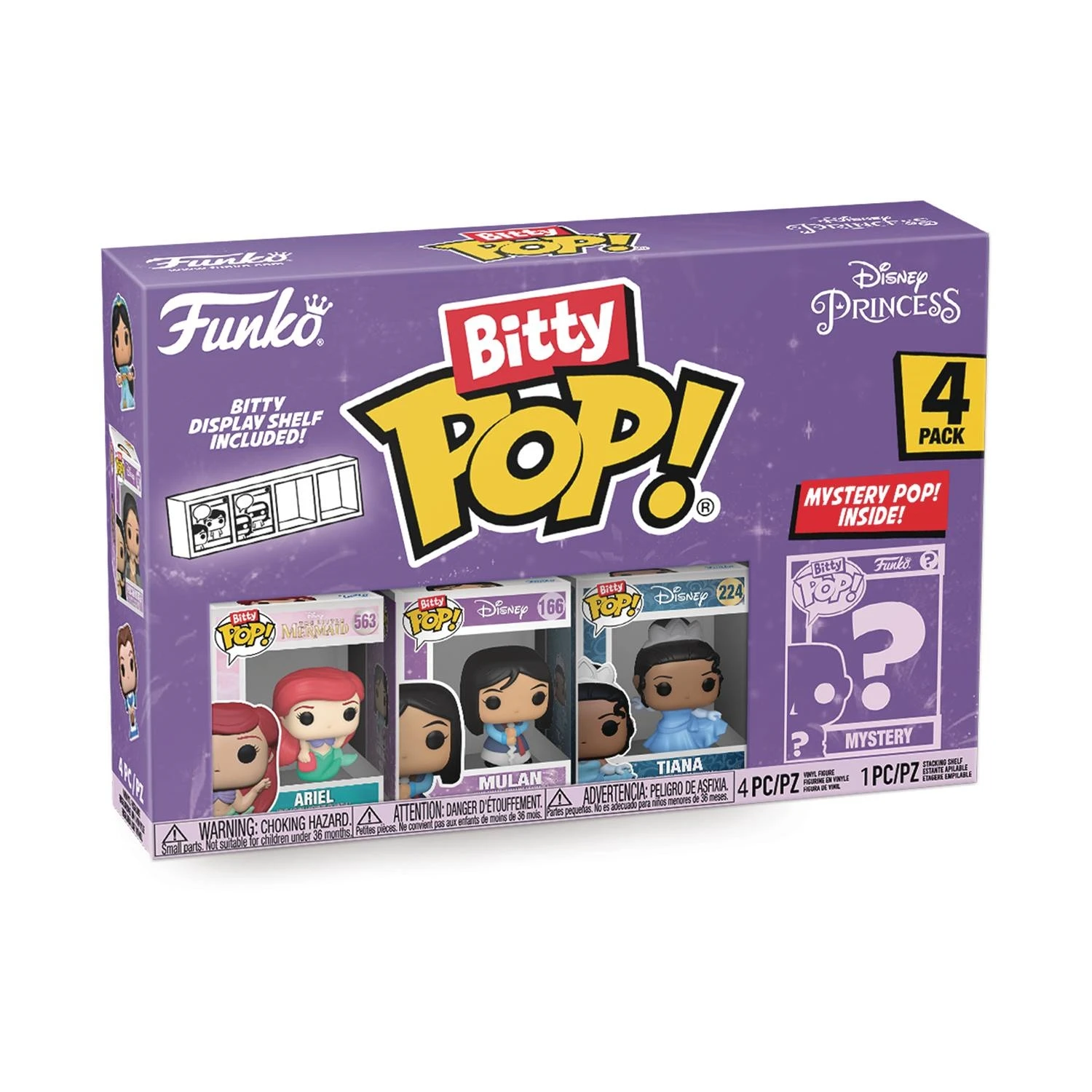 Your favorite Disney Princess Pops! have been transformed into Bitty Pops! Expand your collection with this assortment of Bitty Pop! figures featuring your most beloved, royal heroines as miniaturized figures! Each 4-pack includes four 7/8″ tall vinyl figures, one of them a mystery!