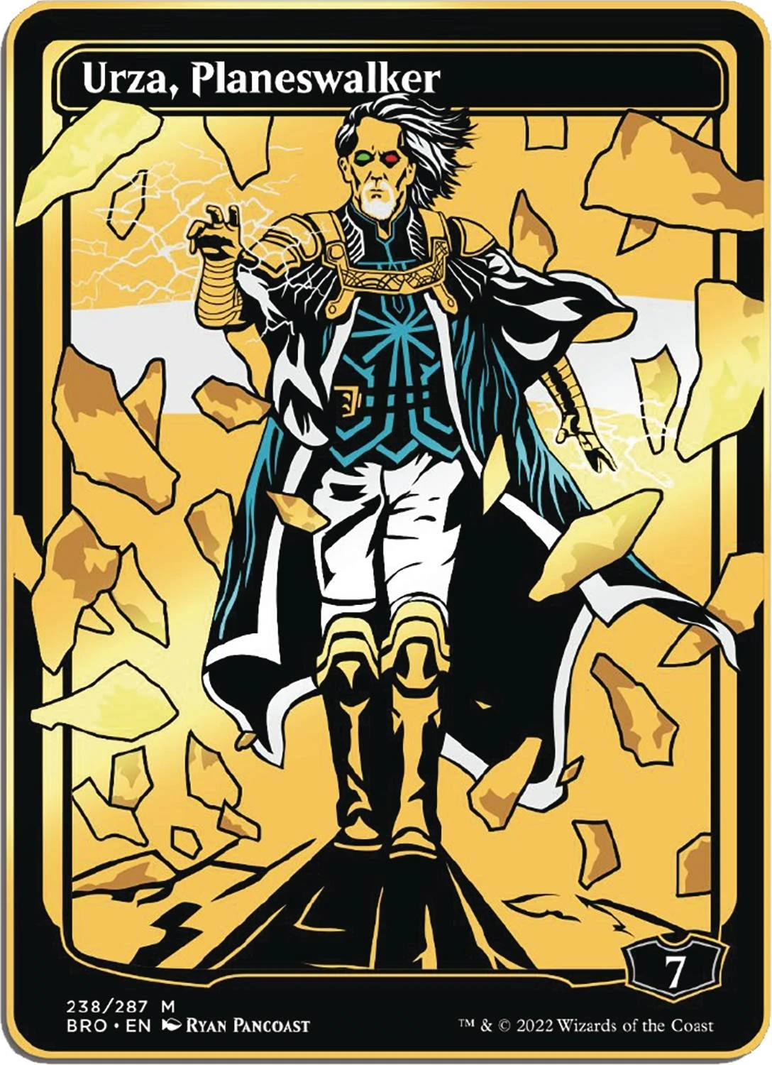 What better way to celebrate these awesome Meld designs than with a pin the size of a magic card? Each pin is laser numbed out of 1993 on the back. This exclusive design in gold finish features pops of color with our ever-popular blackout style character treatment adapted from the original piece (by Chris Rhan for Mishra, by Ryan Pancoast for Urza). Scan the pin with the Pinfinity AR app to hear music and then tap for the selfie and downloadable wallpaper when the card text changes. This Zinc Alloy pin features 2 black rubber backers and comes in a collectable window-box package.