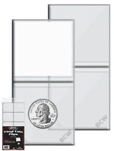 A twin vinyl coin holder, complete with identifying insert. Put the coin in one pocket, the insert in the other, and flip it over – the coin and its identification are inseparable! The inserts are die-cut on a sheet.