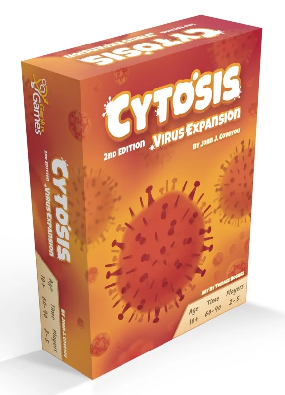 The Virus Expansion expands upon the base game for Cytosis. The expansion add Influenza, Rhino Virus and Ebola. Player may pay ATP to build up their antibodies to each of the three viral strains. When a Virus attacks, all player will roll a number of antibody dice according to their level of health and add it to the antibodies they’ve accumulated throughout the game. The player with the highest antibody response will gain resources while the player with weakest antibody response will lose resources.