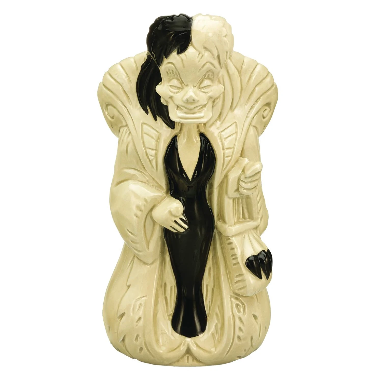 These creative, colorful drinkware products combine some of Disney’s most-popular characters with Beeline’s signature tiki styling! Each Geeki Tikis mug features beautifully sculpted detailing true to the character, is crafted from high-quality ceramic, and is sure to make your next beverage sinfully delicious! The Cruella de Vil Geeki Tikis mug stands 8.5″ tall x 4.25in wide, features a bone color glaze with black accents and a bloodcurdling red interior. Cruella de Vil holds 20oz. HANDWASH ONLY.