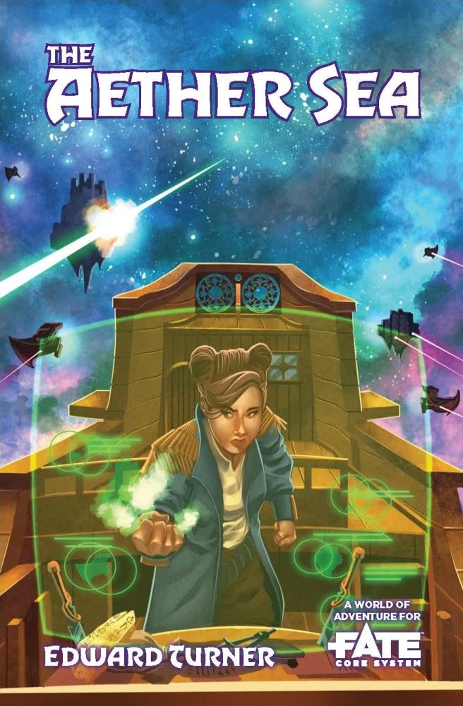 One tiny ship. One huge expanse of aetherspace. Maneuver your ship through the vast aether in The Aether Sea, a Fate world and adventure by Ed Turner. A thousand years of war on Homeworld left it a magically-blighted wasteland, so the elves and dwarves stopped fighting for five minutes and figured out how to leave it behind. Soon everyone took to the vast, empty aether sea. But the Royal Hegemony keeps a tight rein on the Spellcasters Union, and the magic that makes aether travel possible. Play the crew of a little aethercraft out in the deep sea. But you’ve got bad blood with the Royals, so take jobs carefully and make do with the best magic unofficial channels can provide. Keeping the ship afloat won’t be easy. The sea’s a dark and lonely place, and secondhand magic is… fussy. When it works at all. Batten down the hatches and get ready for liftoff in The Aether Sea!
