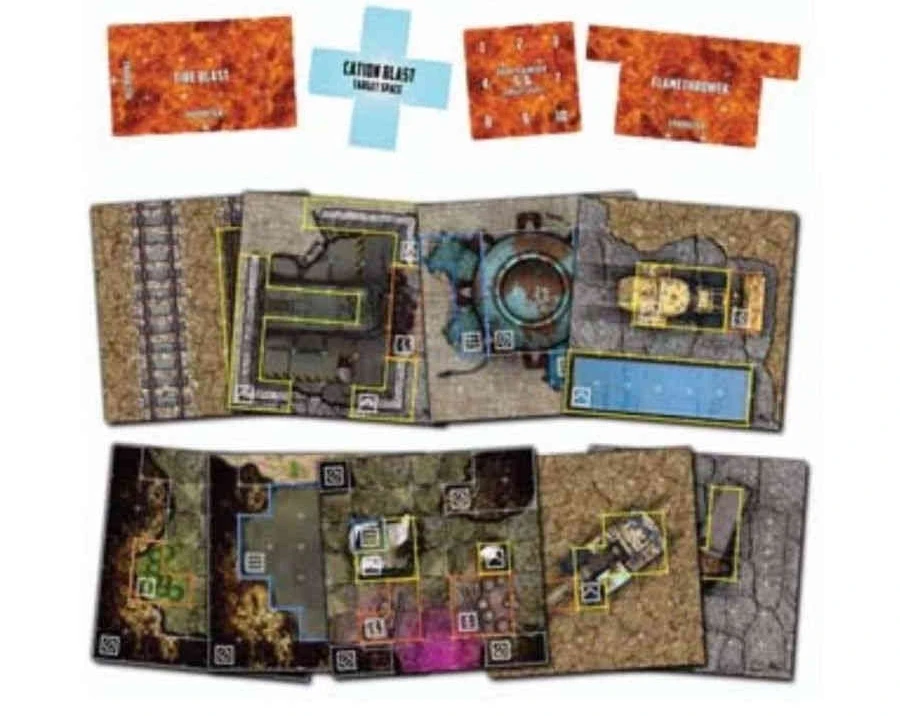 Includes four Transparent Ability Templates and nine Double-sized Battleground Tiles for your games of For What Remains.