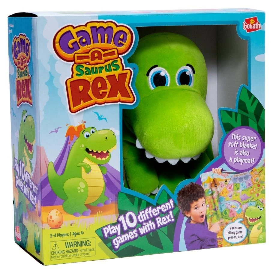 Game-A-Saurus Rex is a playful little prehistoric plush who’s ready to have lots of fun! Rex comes stuffed with a soft blanket that doubles as a playmat along with plenty of pieces that can be used to play 10 different games! What game will you and Rex play today?