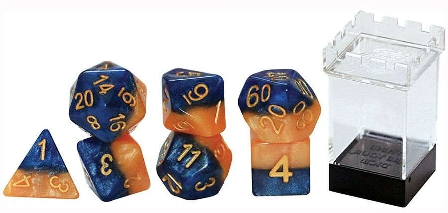 Halfsies Dice are the original layered dice! Featuring a unique half-&-half color arrangement, a semi-translucent nature, a pearlescent swirl within each color, and a smooth blend where the two colors meet.