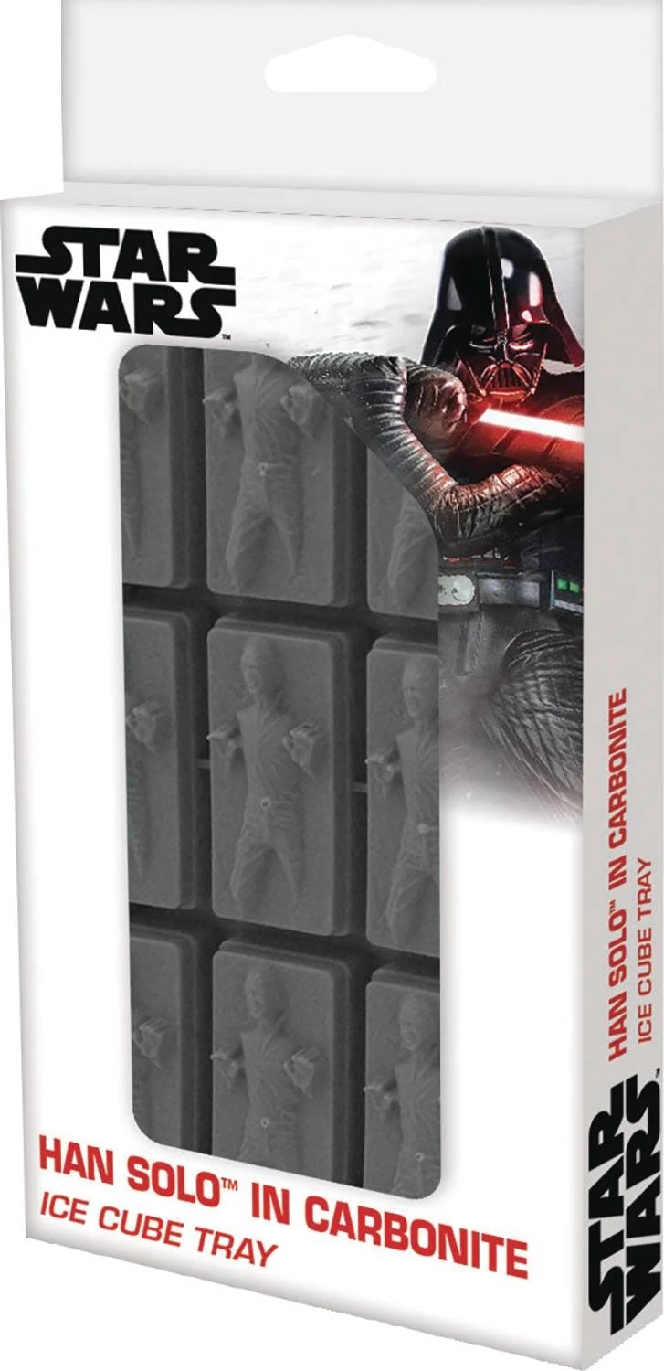 Now from a galaxy far, far away direct to your freezer comes this rubber ice cube tray featuring the classic image of Han Solo encased in Carbonite! This tray turns any cold drink into one of the darkest moments in the Star Wars lore! A great item for display or use, this ice cube tray is a must have for any fan of this classic tale of Good vs. Evil or for anyone named Jabba!