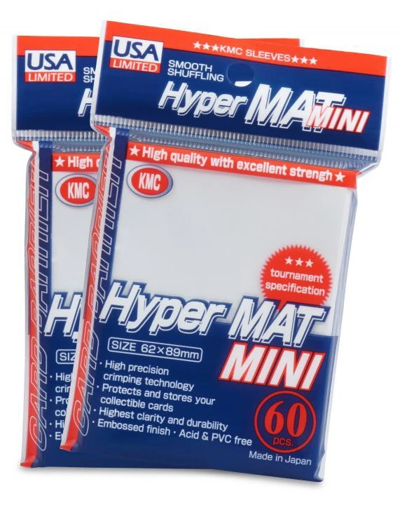 KMC’s new USA Pack sleeves have upgraded sleeve seams. Mini-size version for Japanese card games comes in 60-count packs.