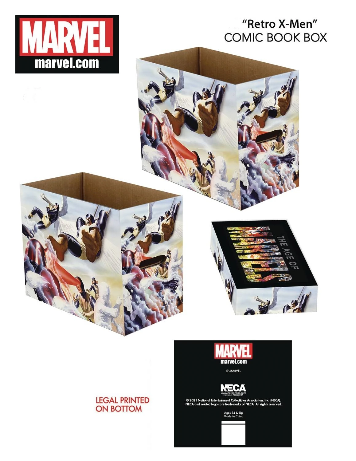 Store your comic books in style with NECA’s line of printed short boxes, featuring licensed artwork from Marvel Comics! They’re stackable, simple to assemble and made from sturdy double-walled corrugated material with two-layer handles and bottom. Each comic book storage box holds approximately 150-175 bagged and boarded comics. Includes lid.