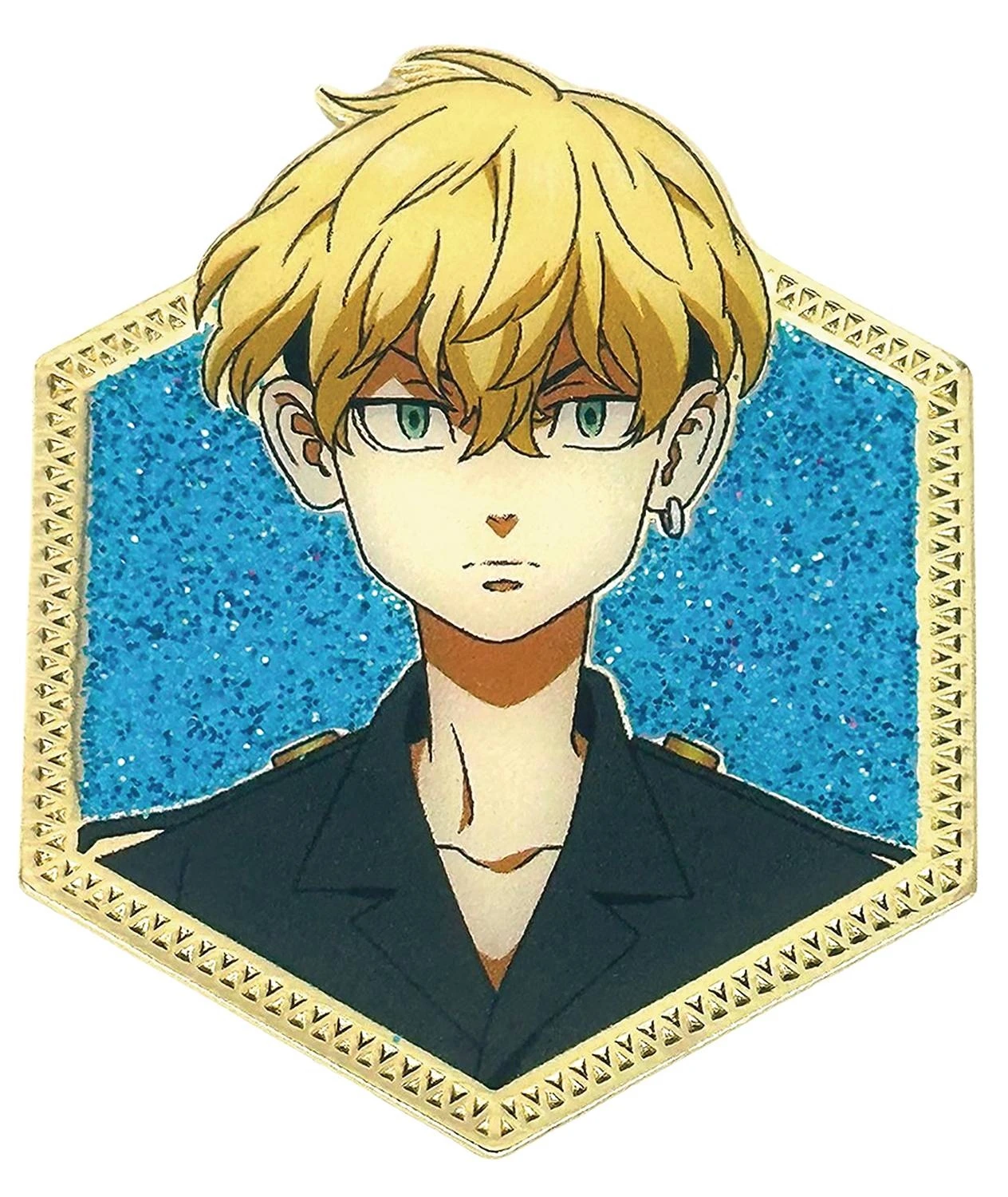Presenting an all new line of hard enamel pins! Featuring a stylish golden design, these pins feature glitter ink for a sparkly finish. Each Tokyo Revengers 1.5″ pin comes packaged with a rubber backer on a branded backing card.