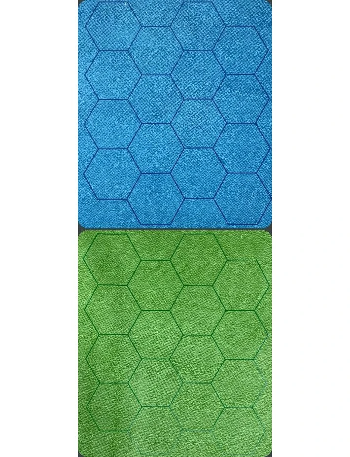 Features a 34.5 inch x 48 inch playing surface in blue and green for miniatures and role-playing games.