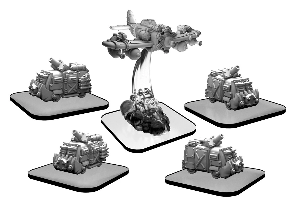 The organization known as Green Fury suffered through a fringe existence for years until many of their beliefs were proven right with the coming of the Monsterpocalypse. The skills they used to rely on to cobble together discarded scientific equipment for further study have been shifted to battlefield tactics to do their part in the planet’s defense. Scavenger vans carry teams of brave technicians into warzones. Once there, these crews salvage any materials still useful in the fight for survival. Providing air support, fighter planes known as Scrappers accompany these salvage teams. These ungainly looking aircraft bristle with weapons and scientific equipment, showing the dedication to both the planet’s continued existence and the ongoing efforts to understand the threats we face.
