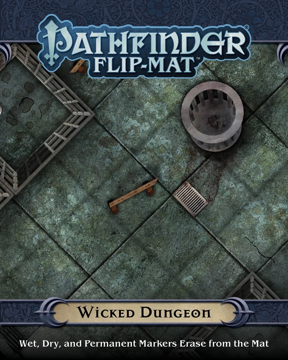 When heroes choose to chase down the fiendish, spooky, and downright villainous, Pathfinder Flip-Mat: Wicked Dungeon has you covered. Each side of this Flip-Mat features a different haunt for the purely wicked.