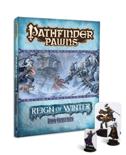 Key monsters and NPCs from the ice-cold Reign of Winter Adventure Path come alive on your tabletop with this collection of more than 100 creature pawns for use with the Pathfinder Roleplaying Game or any tabletop fantasy RPG! Printed on sturdy cardstock, each pawn contains a beautiful, full-color image of a monster or NPC from the Reign of Winter campaign, including dozens of icy monsters and unique NPCs that are also suitable to represent player characters.