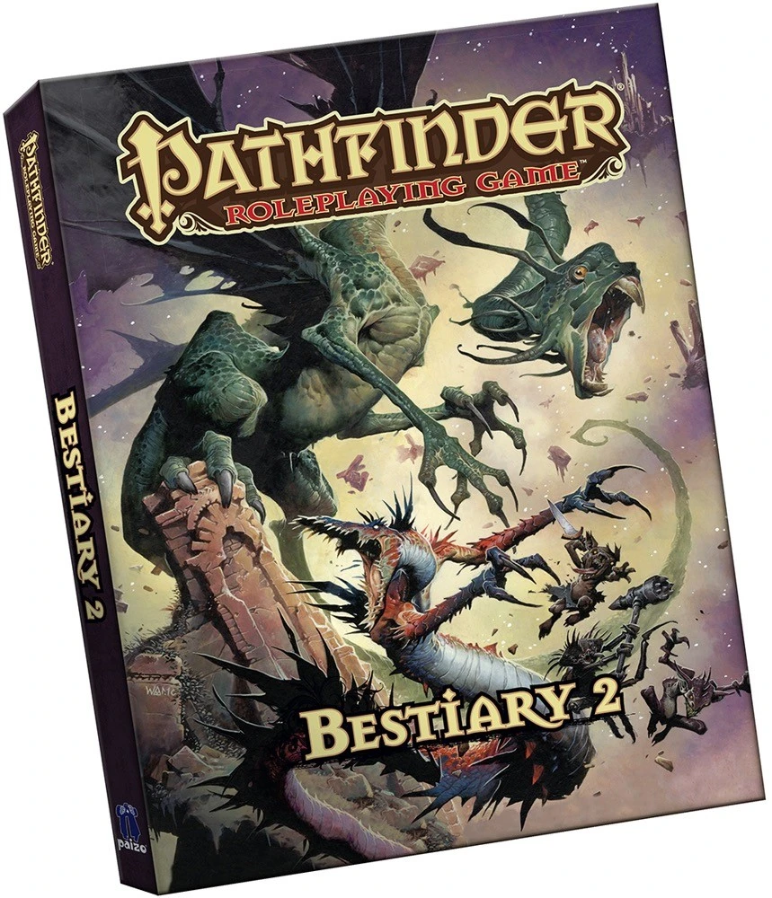 Go beyond goblins with an army of fantasy’s most fearsome foes! Bestiary 2 presents hundreds of different creatures for use in the Pathfinder Roleplaying Game. Within this collection of creatures you’ll find undead dragons and mischievous gremlins, shrieking banshees and unstoppable titans, the infamous jabberwock, and so much more! Yet not all these monsters need to be foes, as new breeds of otherworldly guardians, living shadows, and vampires all might take up adventure’s call. In addition, new rules for customizing and advancing monsters and an expanded glossary of creature abilities ensure that you’ll be prepared to challenge your heroes wherever adventure takes them!