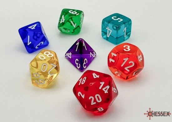 GM and Beginner Player Polyhedral 7-Die Sets will be a great learning tool for new players unfamiliar with the different shapes of polyhedral dice. The idea behind these sets is that a GM can simply state the color of the die (for example Orange d6) so the new player can easily identify and learn these shapes while roleplaying.