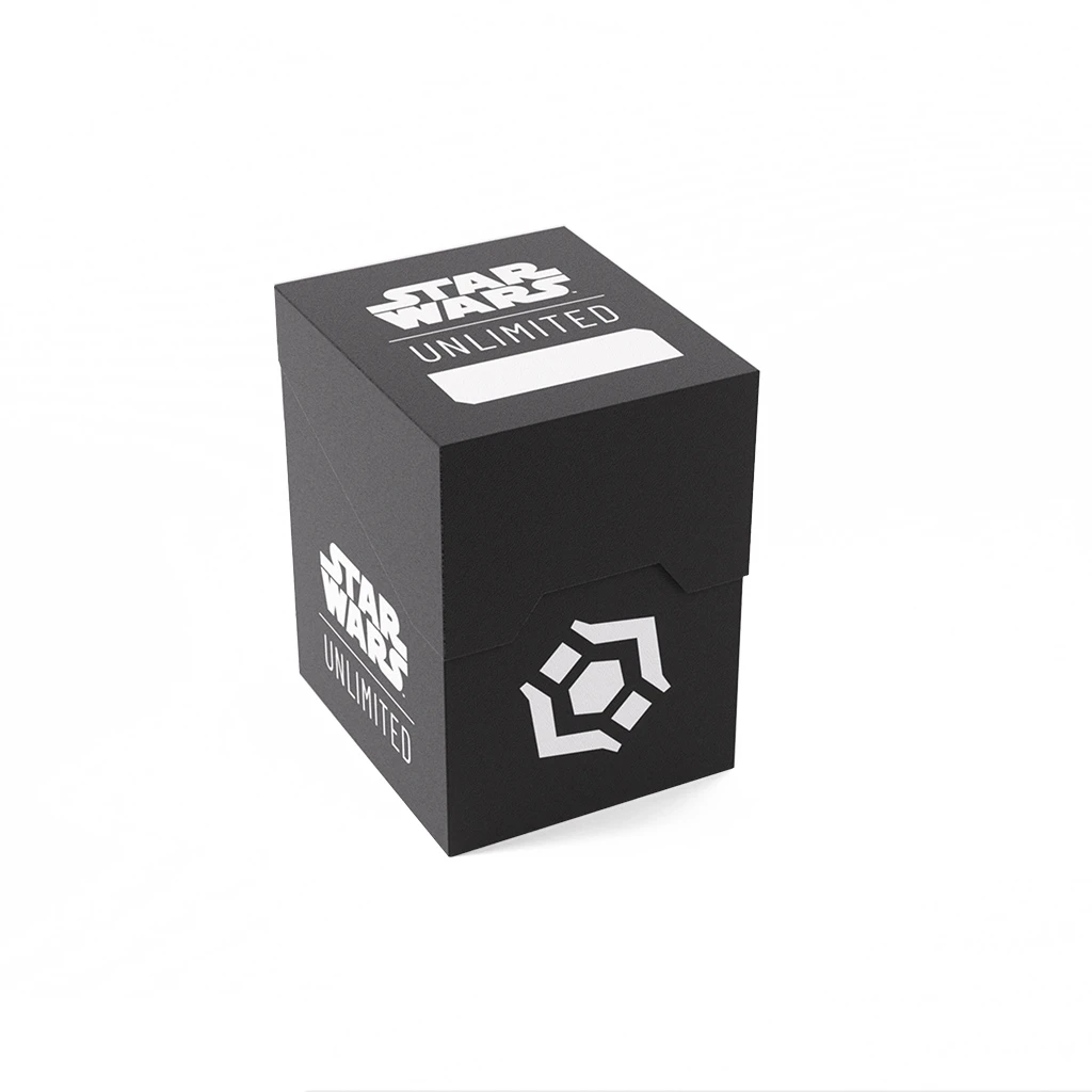 The Star Wars: Unlimited Soft Crate is the all-in-one casual solution for Star Wars: Unlimited players. This full color printed and officially licensed deck box is packed with ingenious features. It protects a full double-sleeved deck of cards and includes an innovative token box! This token box has a smart click-lock mechanism to keep all tokens safely stored – even while pulling it out. Once opened, the lid of the box stays upright for convenient access during gameplay.