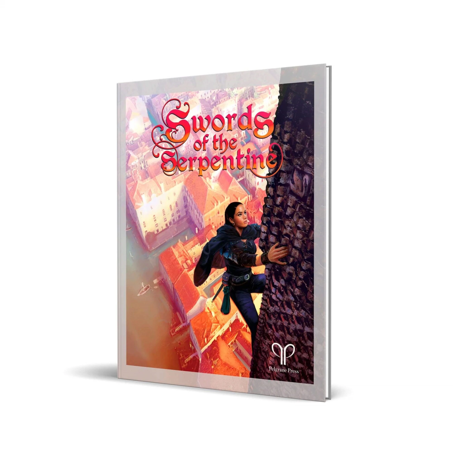 Swords of the Serpentine is a sword & sorcery game of daring heroism, sly politics, and bloody savagery, set in a fantasy city rife with skullduggery and death. The rules adapt the GUMSHOE investigative roleplaying system to create a fantasy RPG with a focus on high-action roleplaying and investigation inspired by the stories of Fritz Leiber, Terry Pratchett, Robert E. Howard, and others.