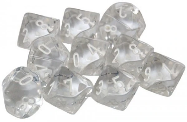 These new & much improved Translucent Poly Dice from Germany are replacing the previous Translucent Dice. The new Translucents will be available in the usual Dice Set styles. Includes 10 10-sided dice.