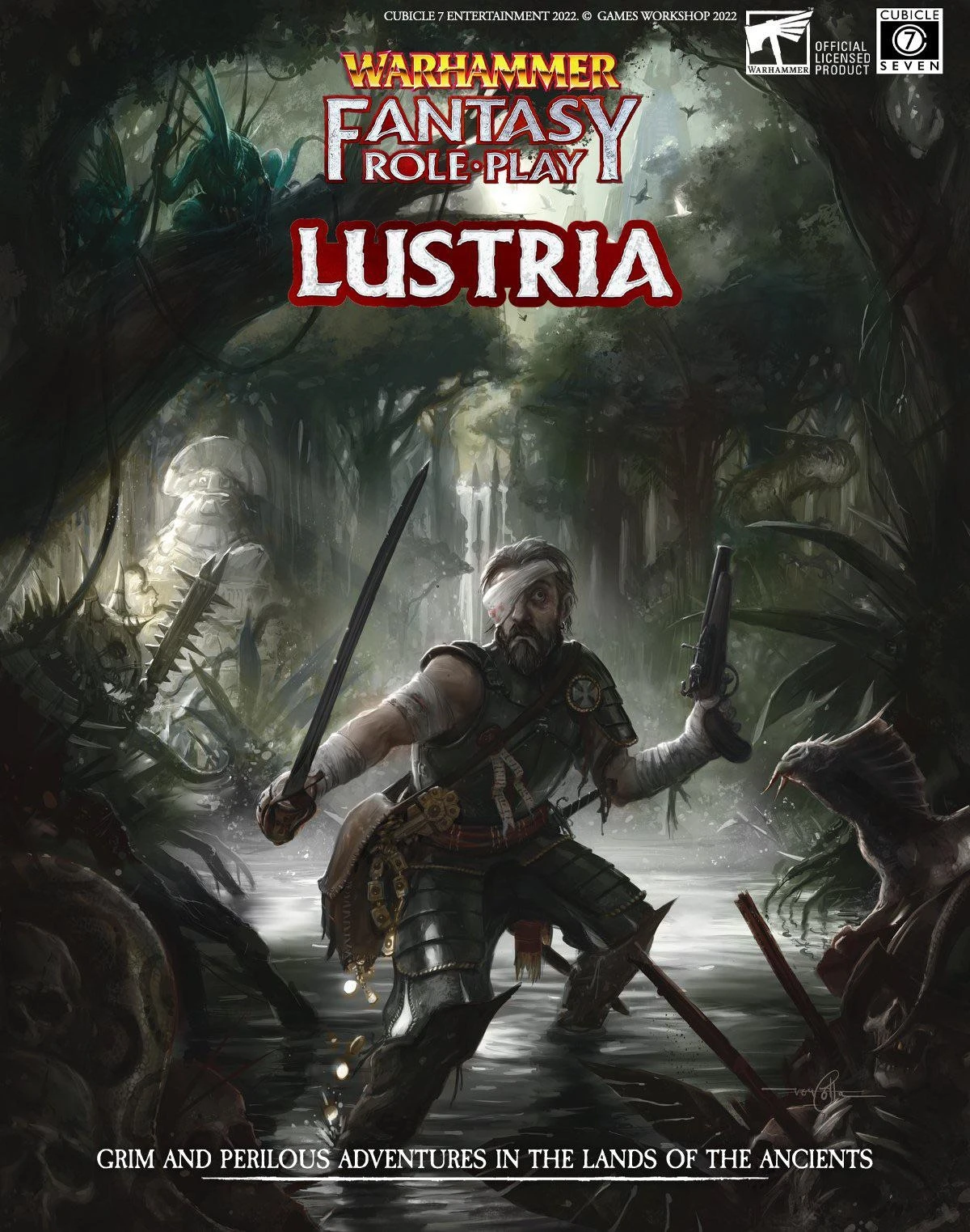 This book contains all players and GMs of Warhammer Fantasy Roleplay need to set their adventures in the mysterious continent of Lustria. Those who make landfall on the shores of Lustria find themselves in an environment that is wholly inimical to warm-blooded life. The jungles seethe with venomous snakes, carnivorous lizards, poisonous flora, and deadly disease. The few precarious settlements that cling to the coast arouse the ire of Lustria’s oldest inhabitants, the Lizardmen, who sally forth from their temple-cities to destroy all who encroach on their territory.